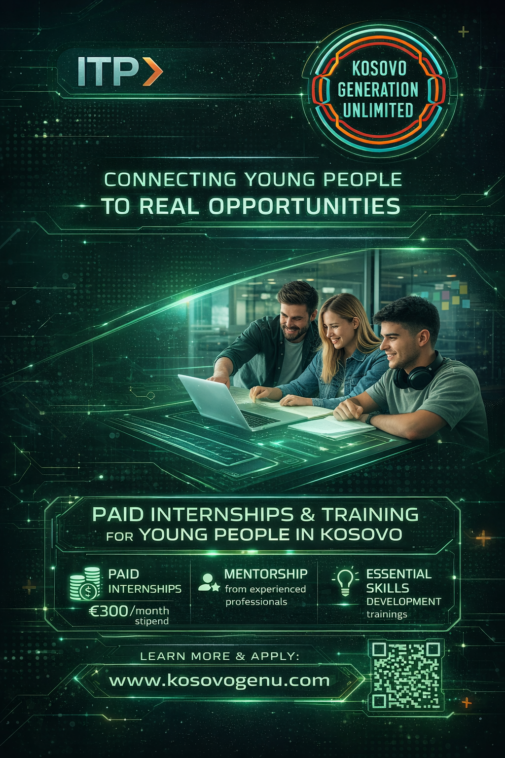Innovation and Training Park (ITP) Prizren stands as one of Kosovo’s leading hubs for skill development, innovation, and youth employability. In this context, ITP is pleased to spotlight Kosovo Generation Unlimited (K-GenU) — a national programme that connects young people with practical work experience, professional development pathways, and structured mentoring.